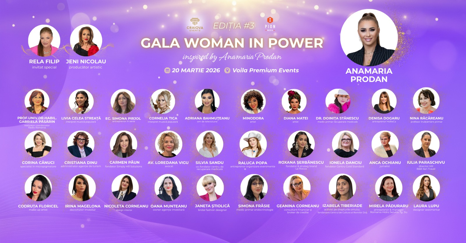 Pe 20 martie 2026, Craiova devine punctul de întâlnire al unor femei remarcabile din întreaga țară, odată cu organizarea Gala Woman in Power, ediția a III-a, un eveniment dedicat recunoașterii performanței feminine și impactului pe care femeile îl au în societate.